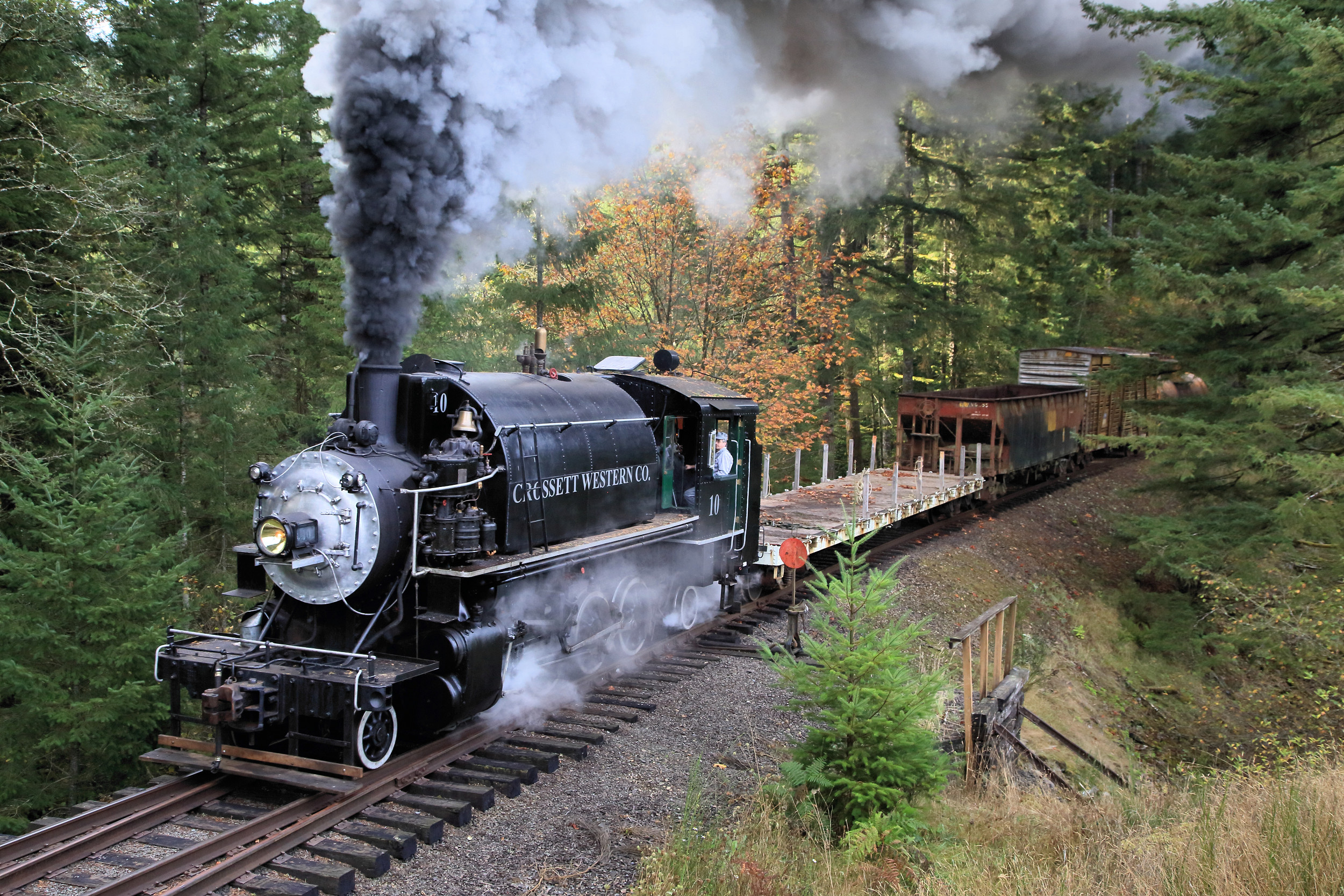 Our locomotive for the day, Crossett Western 2-8-2T #10, was built by Alco in 1929 for the Crossett Western Lumber Company out of Wauna, OR. In 1943, it was moved to the Hammond & Little River Redwood Company (later part of Georgia-Pacific) out of Samoa, CA. Upon retirement in 1964, the engine was purchased by the Fortuna Kiwanis Club and placed in Rohner Park. The engine remained there for a decade before it was sold in 1974 due to insurance issues. Pete Replenger purchased it and moved it to Shelton, WA, where the engine was once again made operational. It ran once or twice a year until 1997. In 2003, it was sold to a group of individuals associated with the Chelatchie Prairie , who again restored it to operation by late 2007. It ran for a year, but developed bearing issues on one of the drivers and needed brake rigging work. Then a dispute broke out amongst the owners, and 10 sat idle and partially disassembled until the legal issues were resolved. The Chelatchie Prairie Railroad itself purchased the engine from the individuals in 2012, and completed repairs in time for the 2013 season.