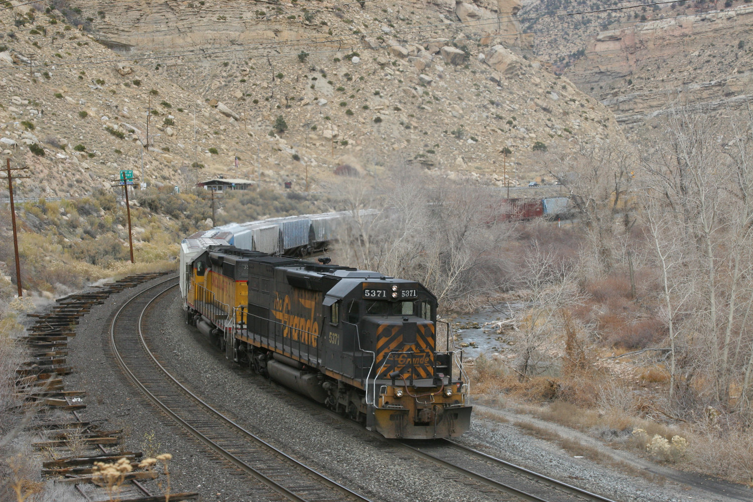 Down between Lynn and Castle Gate, the lines cross the Price River, going from the east bank to the west.