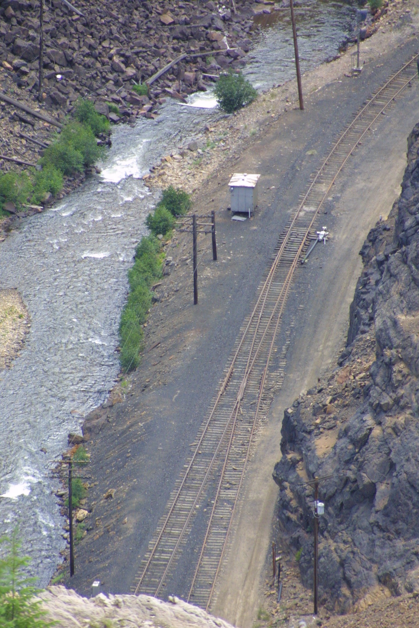 Sunday was equally uneventful. After waking up, checking out, checking Helper, and heading out, I tried this same back road again, with the same results – no trains. In fact, aside from seeing the MDVRO somewhere around Woodside, I didn’t see anything the entire way to Dotsero, and I even did the narrow nasty BLM road thing between Cisco and Westwater (really fun drive, but requires high clearance, perhaps a little 4WD in one splash-through, and good intestinal fortitude). At that point I decided to give up on finding any moving traffic, and went to have a look at the west side of Tennessee Pass instead. Such is the photo bits you’ll find in chapter five – a look at the west side of the Tennessee Pass line, from Minturn to the Pass, as of Sunday, 22-July-2001.